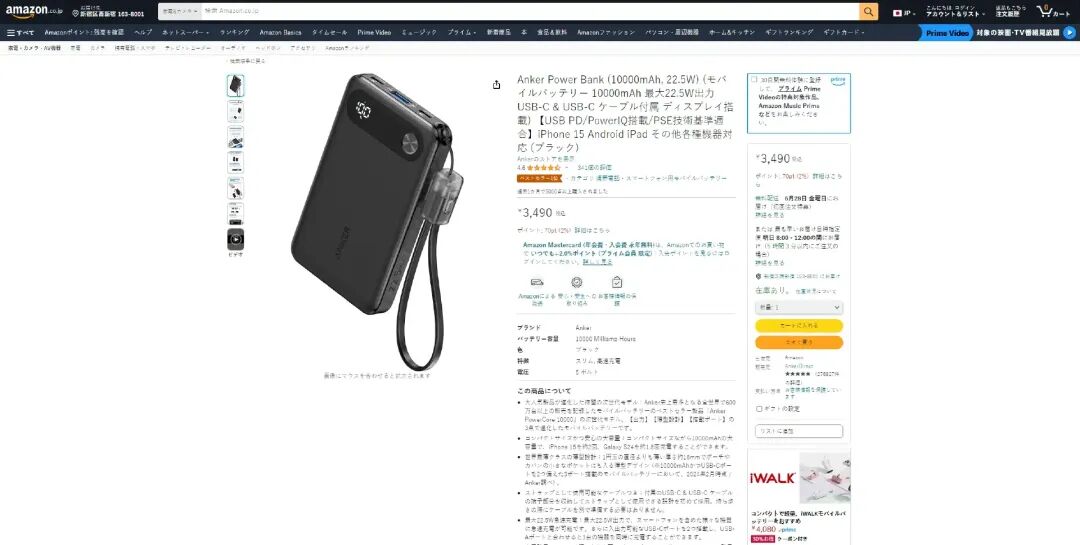 日本消费者购物习惯成熟,消费力强,为卖家提供了巨大的商机。如根据日本亚马逊10款销量最好的充电宝中显示,销亚冠都是安克的充电宝,容量都为10000mAh,分别支持22.5W快充和12W充电。