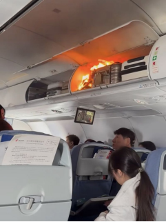 10月18日,有网友发视频称,由杭州萧山国际机场飞往韩国首尔仁川国际机场的国航CA139航班客舱内行李架起火。