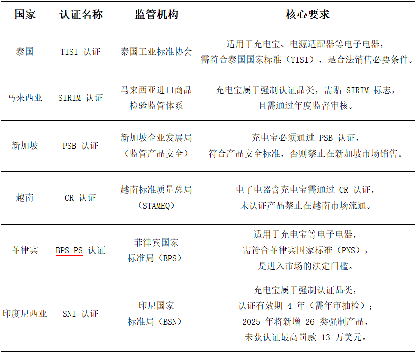 👇👇下面是充电宝进入东南亚各国的合规认证